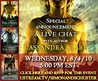 You guys all know how much I loved the Mortal Instruments series. I am just now reading my ARC of Clockwork Angel and I am so excited to see what it’s like. It comes out August 31 but Simon and Schuster has some awesome stuff planned to spread the word about it.